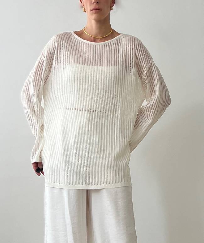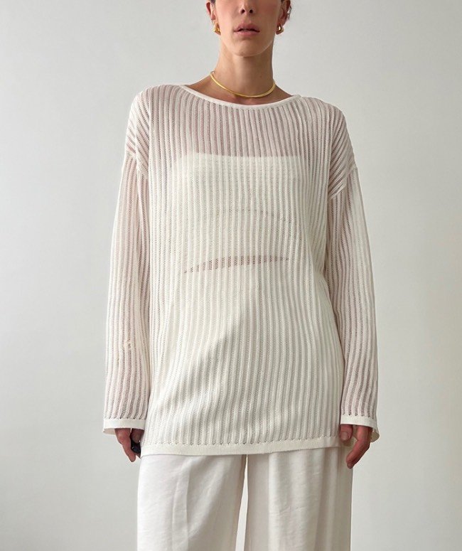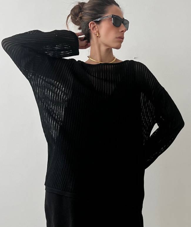 Este tricot over size vai deixar seu look chique e totalmente moderno. A Blusa Tuik Long é de tricot rendilhado, com transparência, mangas longas e modelagem ampla. Combine com camisetas, sutiãs ou vestidos. Tudo cairá bem com essa peça.