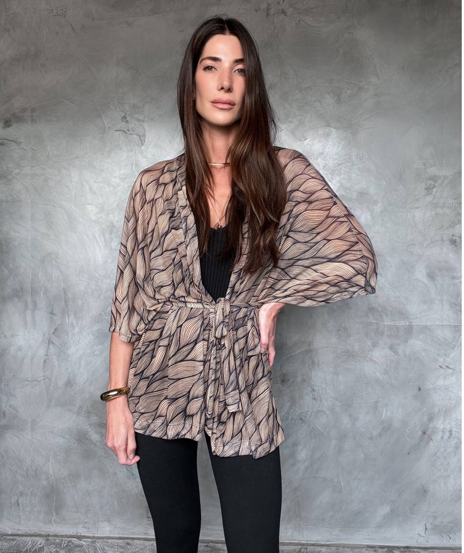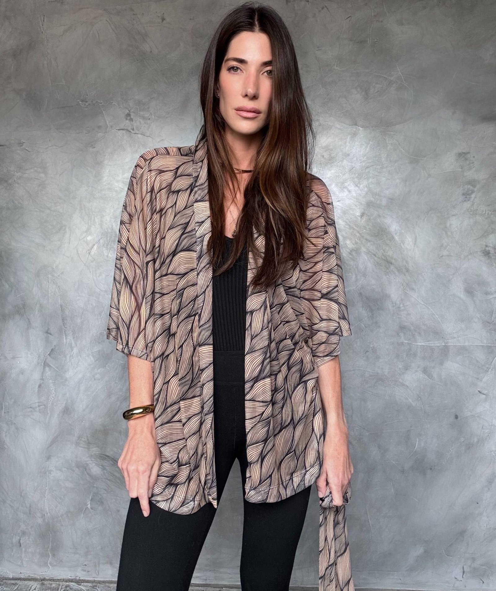 O Kimono Ÿugen é uma peça leve, desenvolvida no Tule, com estampa exclusiva. A peça acompanha uma faixa do mesmo teciso e estampa. Use sua criatividade para usá-lo com um jeans, sobre um vestido, ou com um bikini.