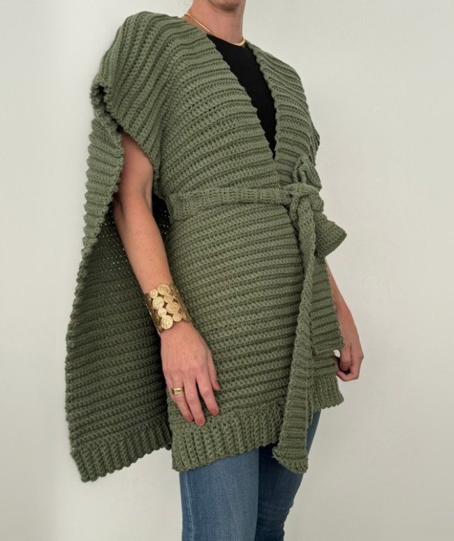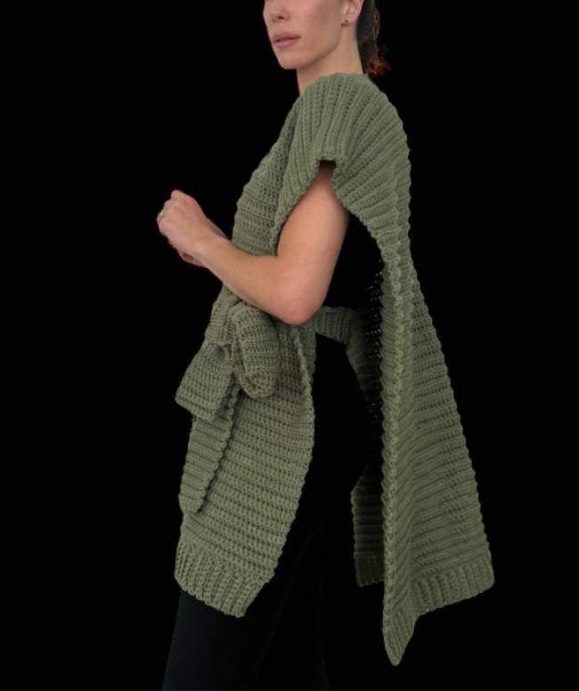 O Poncho Kyoto Verde é de lã 100% acrílica. Com modelagem exclusiva, ele é estruturado e tecido a mão. Estiloso e versátil, oferece varias possibilidades de amarração, utilizando o cinto que acompanha a peça. As peças são limitadas.