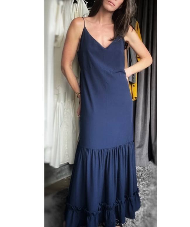 Vestido Longo em tecido leve, babados na barra e alça regulável. O Vestido Ann é leve e combina com infinitas peças. No inverno ou no verão, ele será sempre uma peça versátil.