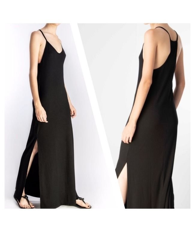 Vestido longo em malha canelada. O Vestido Oui tem fendas laterais e costas nadador. Peça indispensável no seu closet. Combina com absolutamente tudo, podendo ser usado tanto no verão, quanto no inverno.